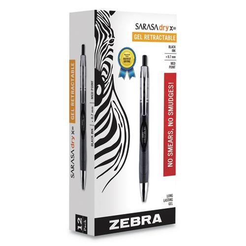 Sarasa Dry Gel X30 Retractable Gel Pen, Medium 0.7mm, Black Ink/Barrel, Dozen