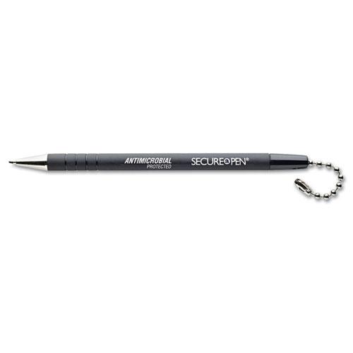 Secure-A-Pen Antimicrobial Ballpoint Counter Pen, 1mm, Black Ink/Barrel