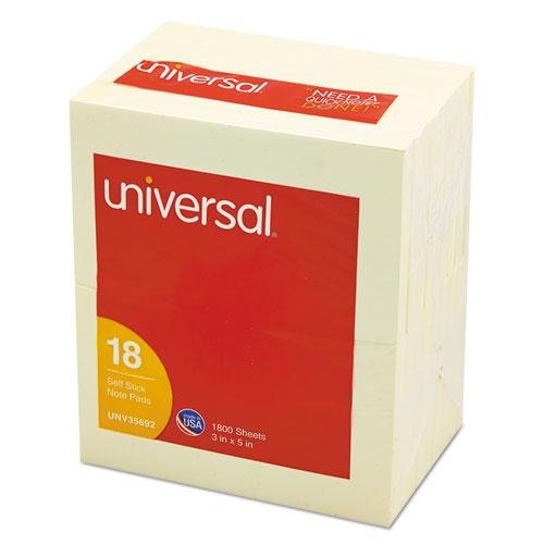 Self-Stick Note Pads, 3 x 5, Yellow, 100-Sheet, 18/Pack