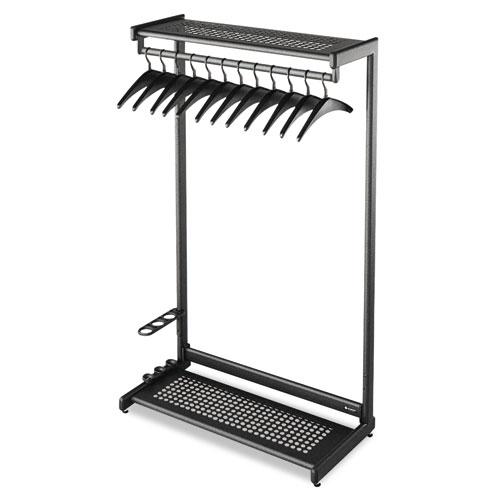 - Black finish is stylish and modern allowing rack to provide neat, subtle garment storage in meeting and conference rooms.