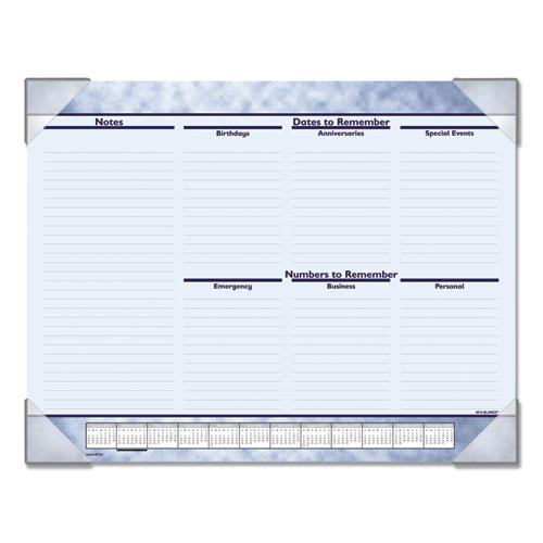 - Stylish desk pad helps protect your desk and features upscale slate blue design on each page.