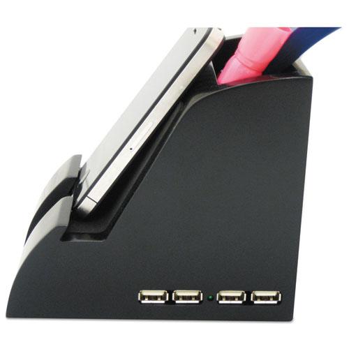 - Four USB ports to charge/power devices and connect to computer.