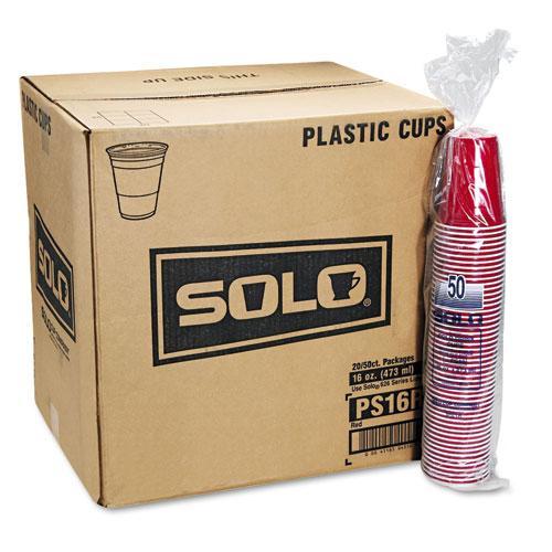 Solo Plastic Party Cold Cups, 16oz, Red, 50/Bag, 20 Bags/Carton