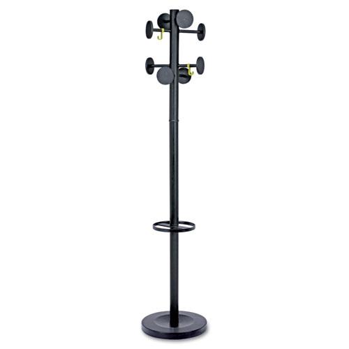 Stan3 Steel Coat Rack, Stand Alone Rack, Eight Knobs, Powder Coat Black