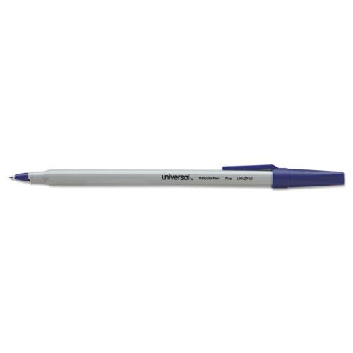 Stick Ballpoint Pen, Fine 0.7mm, Blue Ink, Gray Barrel, Dozen