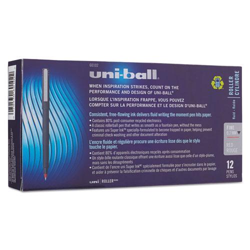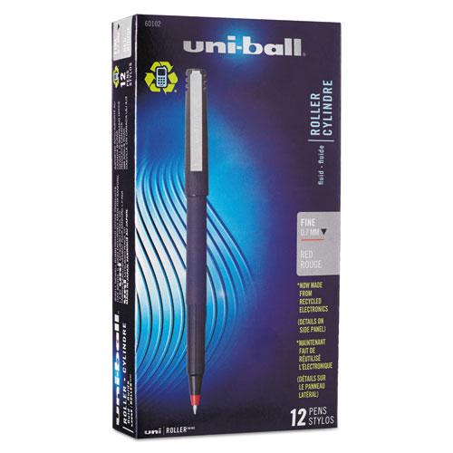Stick Roller Ball Pen, Fine 0.7mm, Red Ink, Black Matte Barrel, Dozen
