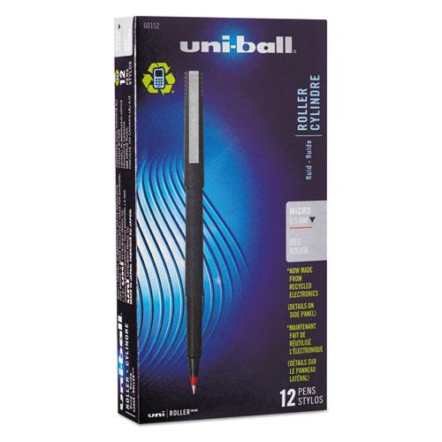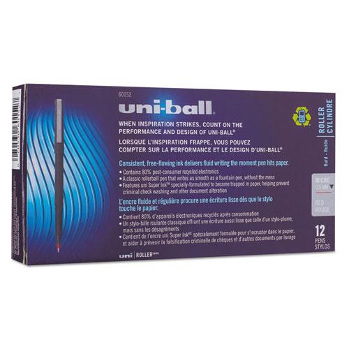 Stick Roller Ball Pen, Micro 0.5mm, Red Ink, Black Matte Barrel, Dozen