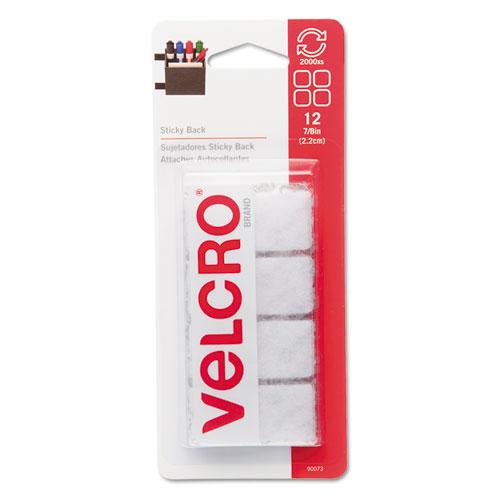 Sticky-Back Hook & Loop Fasteners, 7/8″ sq., White, 12/Pack
