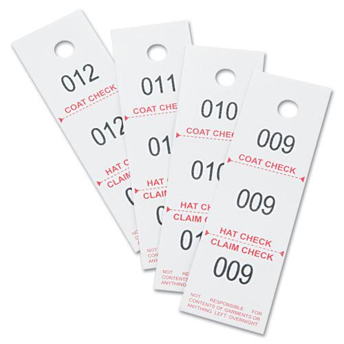 Three-Part Coat Room Checks, Paper, 1 1/2 x 5, White, 500/Pack