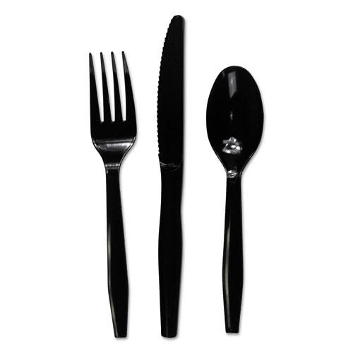 Three-Piece Cutlery Kit, Fork/Knife/Teaspoon, Black, 250/Carton