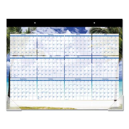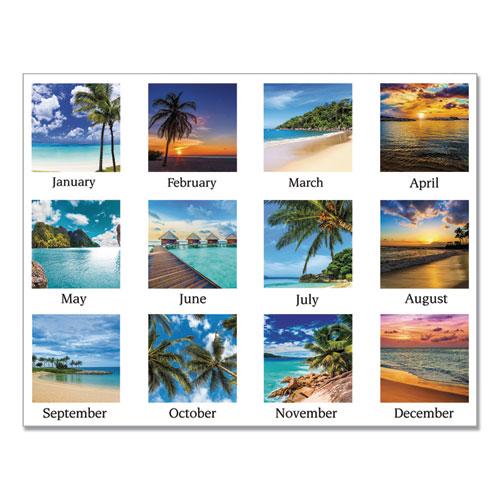 - Escape to the beach in this tropical calendar — warm sand, turquoise water and palm trees greet you each month.