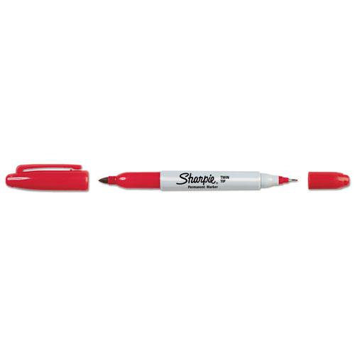 Twin-Tip Permanent Marker, Fine/Extra-Fine Bullet Tip, Red, Dozen