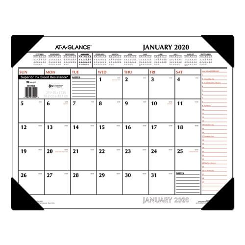 - Desk pad is printed in black and red inks on white heavyweight paper with superior ink bleed resistance.