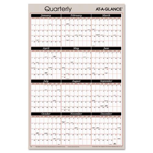Vertical/Horizontal Erasable Quarterly Wall Planner, 24 x 36, 2019