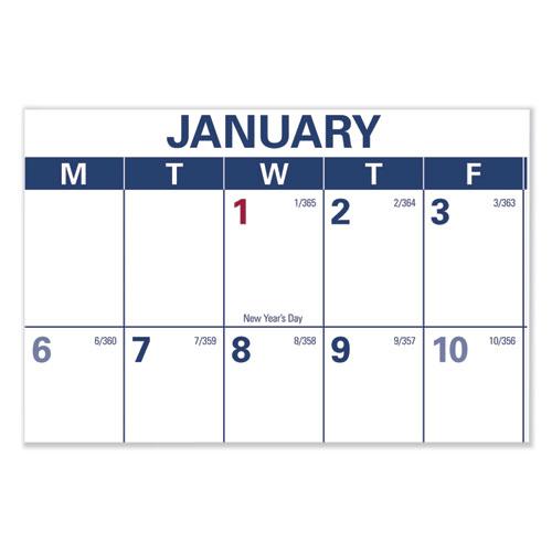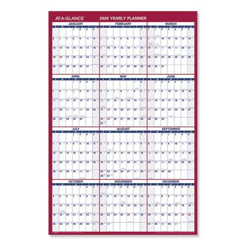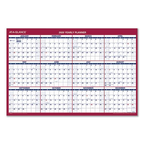 - Full-year calendar with open blocks featured on both sides.