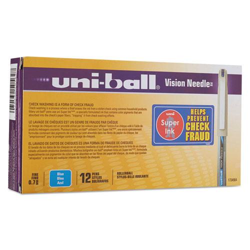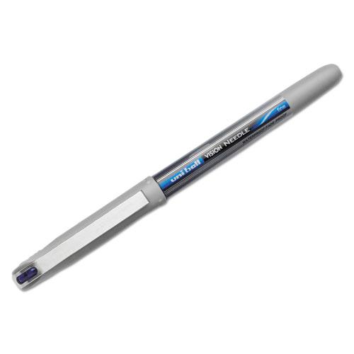 VISION Needle Stick Roller Ball Pen, Fine 0.7mm, Blue Ink, Silver Barrel, Dozen
