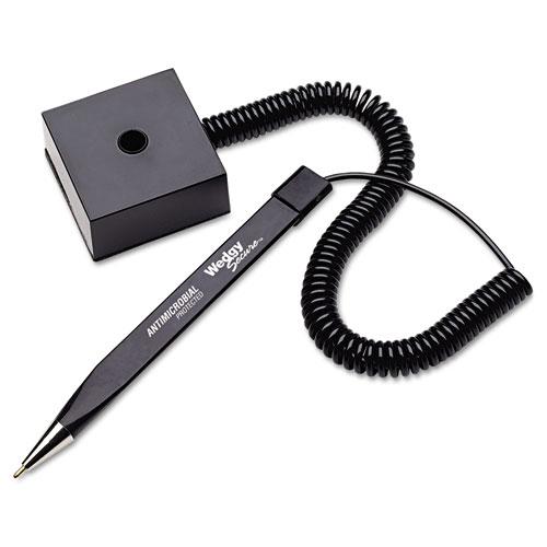 Wedgy Secure Antimicrobial Ballpoint Counter Pen w/Square Base, .5mm, Black Ink/Barrel
