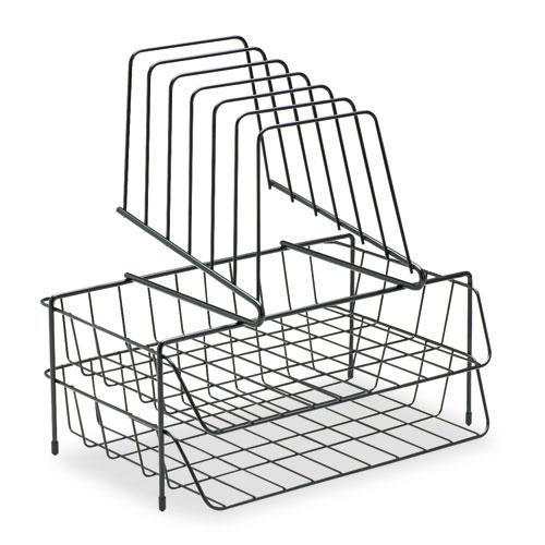 Be the first to review “Wire Double Tray w/Step File, 8 Comp, Steel, 13 7/8 x 10 1/8 x 14, Black”